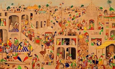 根据该画背景中的曼哈迪尔寺可以推测,这幅画展现的是印度北部阿姆利则地区的风俗人情和建筑风貌,具有很高的历史研究价值和收藏价值。