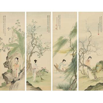 林雪岩,是清代画家,初师金健吾,工画,能书,精习诗文金石。初师金健吾,工画,能书,后居上海,随从赵叔孺游,赵逝后,又与戈湘岚同从陈含光游。精习诗文金石。此作笔法工整秀润,设色亮丽但又不失高雅。仕女画得形神妩媚,开相具有典型的清代风格。作品清润可爱而又十分精致。……