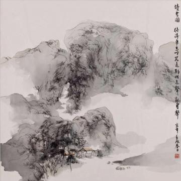 顾真真国画山水島 纸本 34cm×70cm 2011字画之家