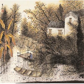 叶其嘉国画山水小浦闻鱼跃字画之家
