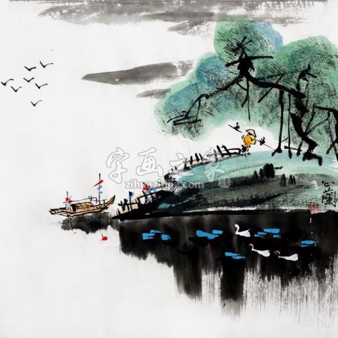 只取名家精品,六大品牌服务保障 《春江渔归》周心兰国画作品
