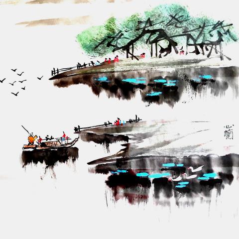 只取名家精品,六大品牌服务保障 《春江渔者》周心兰国画作品