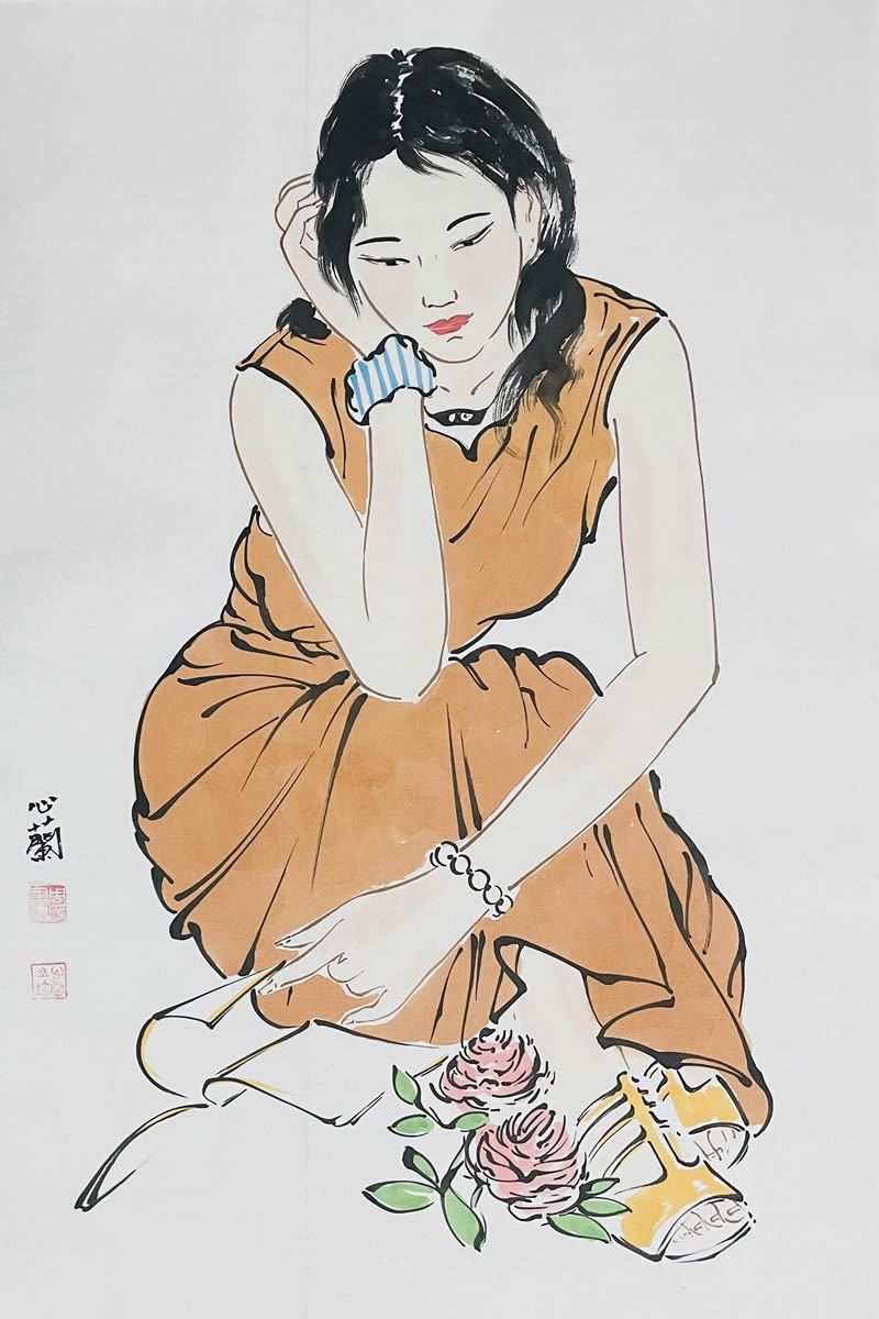 只取名家精品,六大品牌服务保障 《美人图》周心兰国画作品