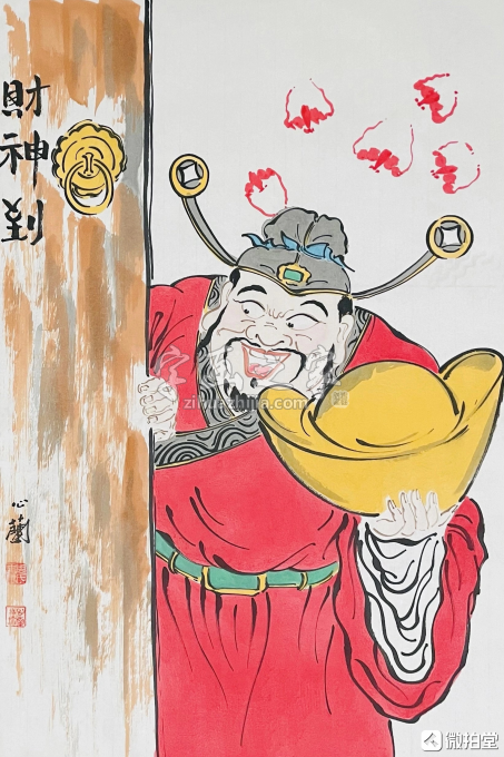 只取名家精品,六大品牌服务保障 《财神到》周心兰国画作品