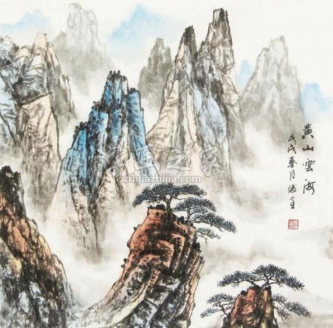 只取名家精品,六大品牌服务保障 《黄山云海》韩俊全国画作品