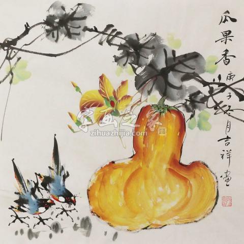 只取名家精品,六大品牌服务保障 《瓜果香》孙吉祥国画作品