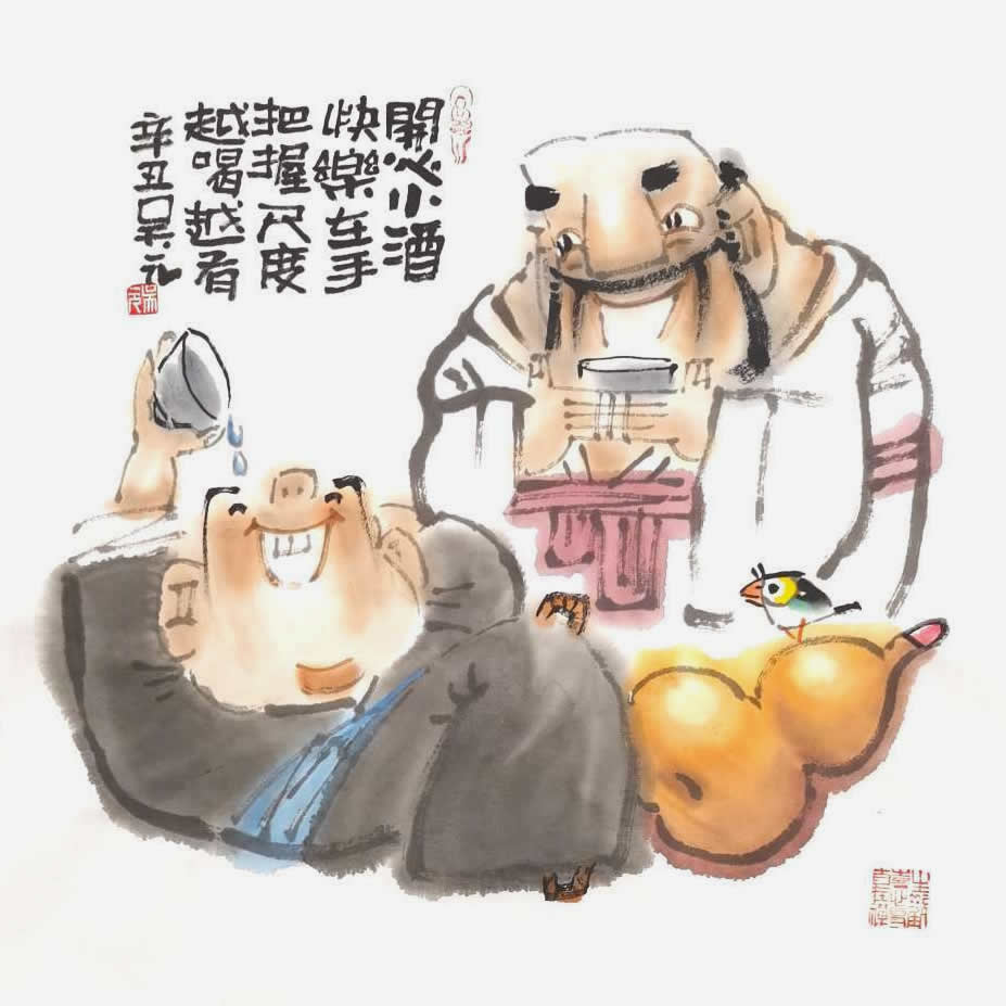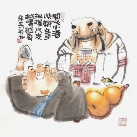 只取名家精品,六大品牌服务保障 《开心小酒》吴元国画作品