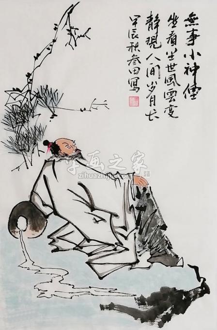 只取名家精品,六大品牌服务保障 《无事小神仙》鲁叁田国画作品
