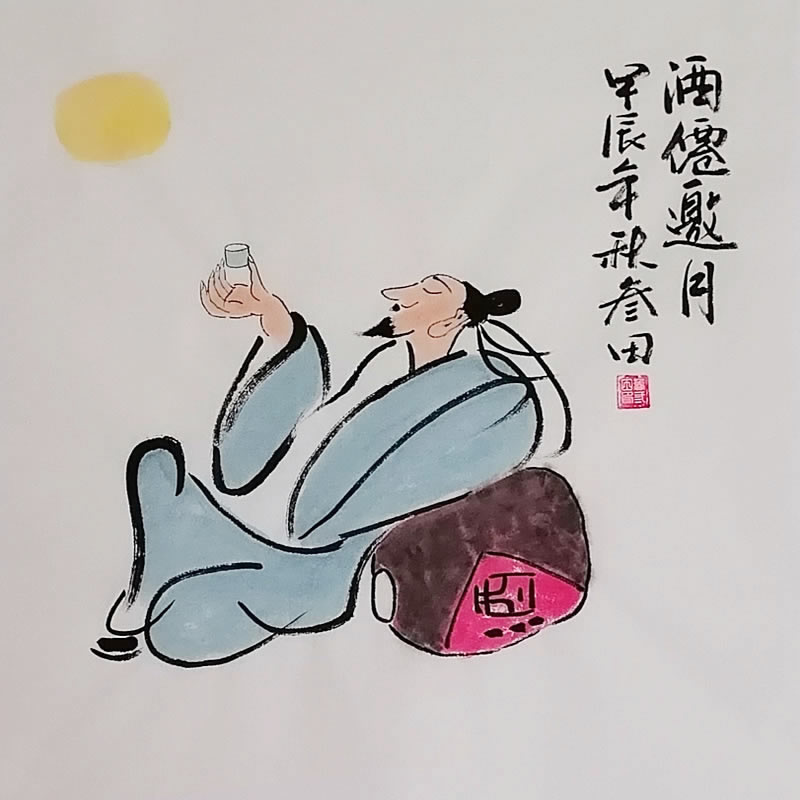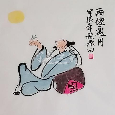 只取名家精品,六大品牌服务保障 《酒仙邀月》鲁叁田国画作品