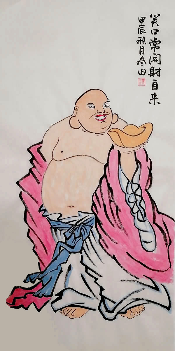 只取名家精品,六大品牌服务保障 《笑口常开财自来》鲁叁田国画作品