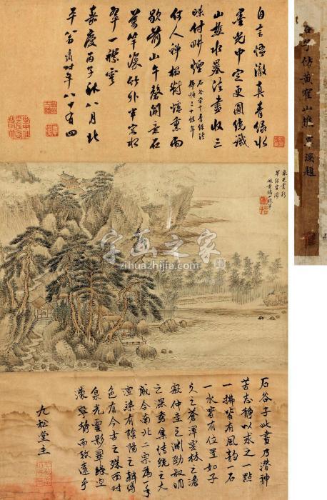 | 【作品简述】 《王翚仿黄鹤山樵笔意镜心设色纸本》题识:泉光云彩,翠绿空蒙。仿黄鹤山樵笔。钤印:王翚之印、石谷子题跋:1.自言悟澈真青绿,水墨光中空更圆。才识山樵水墨法,画收三昧付耕烟。(石谷尝言青绿法,静悟三十余年。)何人禅榻对炉熏,雨歇前山午磬闻。意在万竿深竹外,半窗水翠一襟云。嘉庆丙子秋八月,北平翁方纲时年八十有四。钤印:翁方纲印、覃溪、坐中佳士左右修竹2.石谷子此画乃潜神苦志,静以求之,一点一拂,皆有风韵。一石一水,皆有位置。如子久之苍浑,云林之澹寂,仲圭之渊劲,叔明之深秀。集传统之大成,合南北二宗为一手。渲染有阴阳之殊。面对泉光云影,翠绿空蒙,宁静而致远乎。九松堂主。钤印:九松堂珍藏题端:石谷子仿黄隺山樵,覃溪题。。该作品曾经在2016-06-06日由北京保利国际拍卖有限公司组织的艺林藻鉴——中国古代书画日场专场上拍卖过。字画之家www.zihuazhijia.com专注传播名家书画艺术,字画之家网友普遍关心的是《王翚仿黄鹤山樵笔意镜心设色纸本》价格走势?值多少钱?哪里买? |