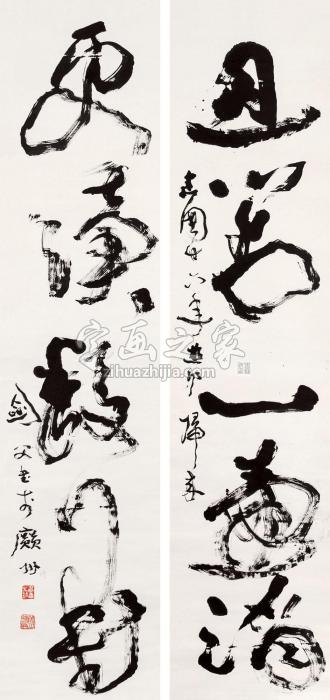 | 《高剑父五言书法对联轴心水墨纸本钤印:高仑之鉨、广州番禺县》 |