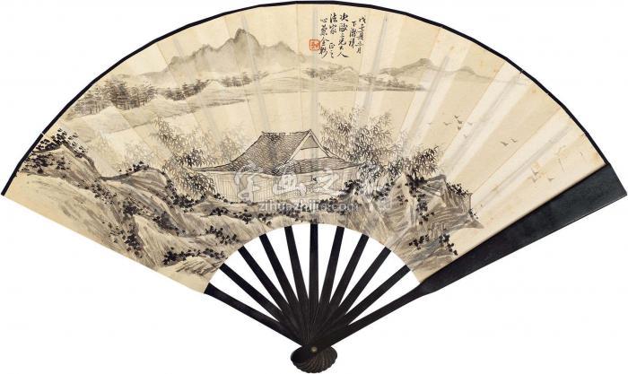 | 《金心兰1888年作明窗读书成扇水墨纸本》 |
