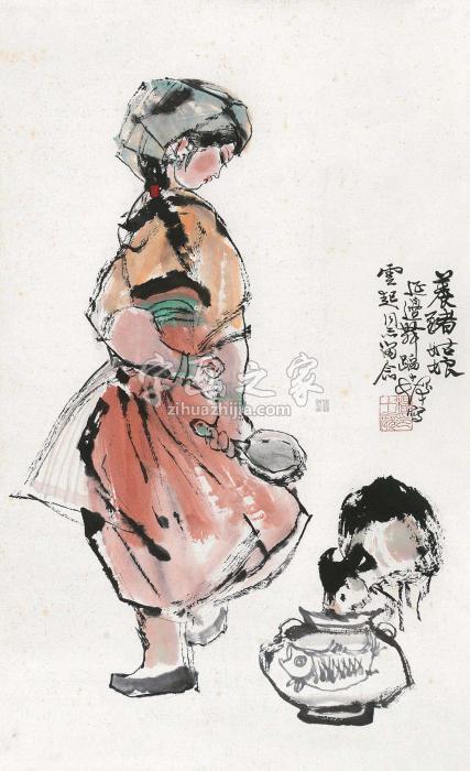 | 《程十发养猪姑娘立轴设色纸本》 |