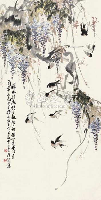 | 《房少臣丁丑(1937)年作紫藤飞燕立轴设色纸本》 |